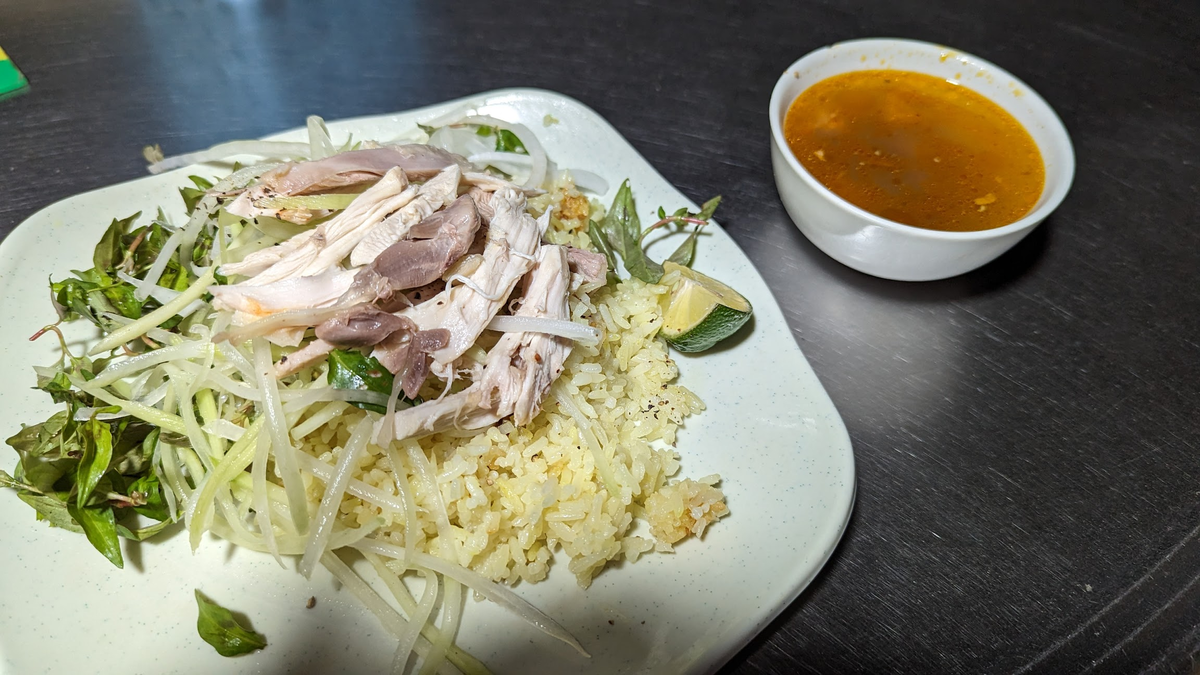 シンガポールのともカオマンガイとも違うホイアンのチキンライス、コムガー。