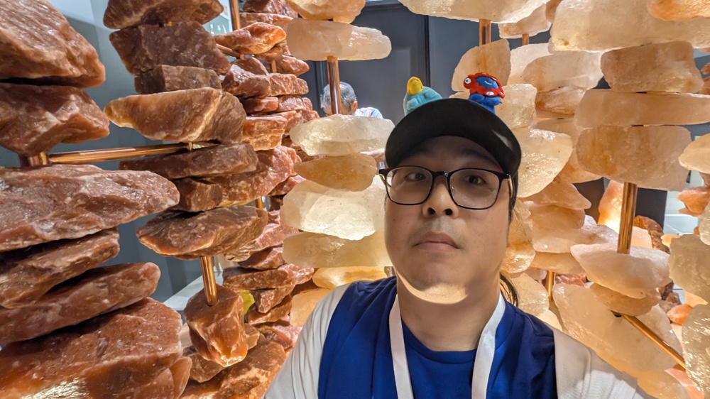 パキスタンの展示は大量の岩塩に見て触れることが出来た。岩塩に囲まれて写真を撮れるコーナーで自撮り。